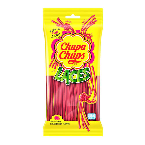 Maak je klaar voor een heerlijke zoete ervaring met de Chupa Chups Laces Strawberry! Deze onweerstaanbare snoepjes zijn perfect voor zowel kinderfeestjes als als tussendoortje voor volwassenen. Met een verpakking van 18 x 90g heb je voldoende om te delen, of gewoon om zelf op te eten!